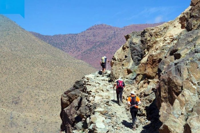 A gentle ascent to Sidi Chamharouch (2275m) and its famous “marabout” (tomb of a holy person). You visit the village where there is intense activity. By following a stream and entering an increasingly mineral world, you reach the Neltner refuge (3200m).