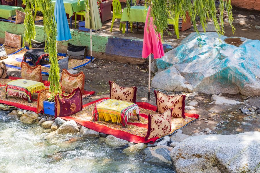 Lunch will be served alongside the river, on the terrace of a small traditional restaurant. You will also have the chance to visit a female coop producing Argan oil on the way back.
